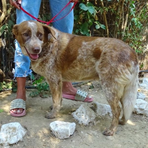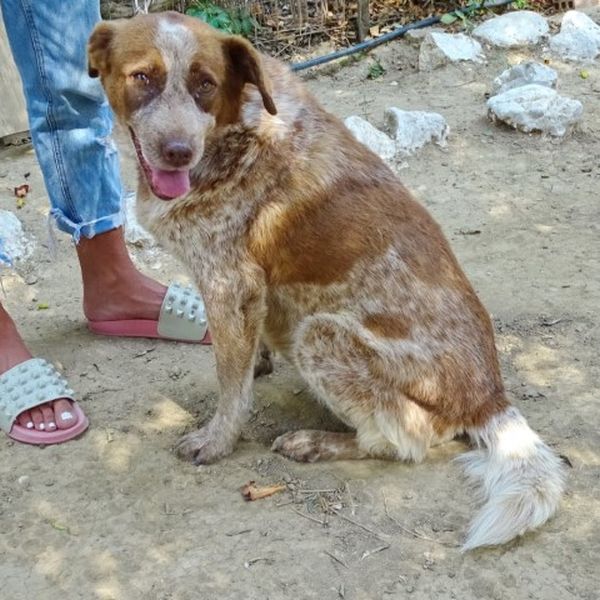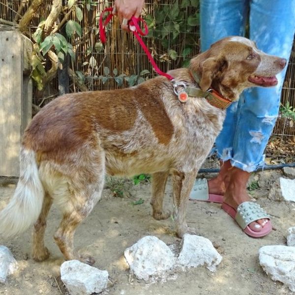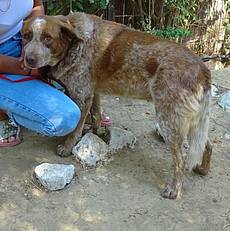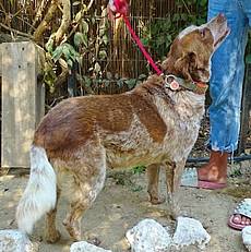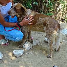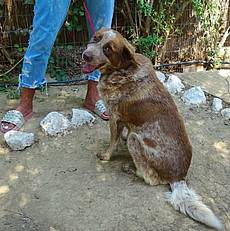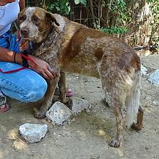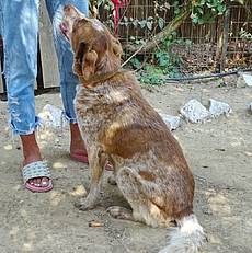 Vor einigen Monaten waren die Bauarbeiten abgeschlossen und die Bauarbeiten nahmen einige der dort lebenden Hunde mit. Fofi blieb mit einem kleinen Welpen alleine zurück. Örtliche Tierschützer ließen Fofi kastrieren, mussten sie danach aber schweren Herzens wieder auf die Straße zurückbringen, da niemand Platz für die Hündin hatte. Einige Zeit später sahen die Tierschützer im Facebook Bilder einer ruhigen Hündin, die am Strand auf der Suche nach Futter und Streicheleinheiten den Menschen hinterher lief. Diese Hündin war Fofi. Ein junger Tierschützer fuhr los und holte die Hündin vom Strand weg, da die Urlaubszeit so langsam zu Ende geht. Aktuell lebt Fofi auf einem eingezäunten Grundstück mit vielen Welpen. Da aber auch in Griechenland das Wetter zusehends schlechter und kälter wird, suchen wir für Fofi DRINGEND ein schönes Zuhause, damit sie nicht noch einen Winter draußen überstehen muss. Mit 8 oder 9 Jahren hat Fofi zwar das Seniorenalter erreicht, was aber NICHT bedeutet, dass sie keine Spaziergänge und sonstigen Unternehmungen mehr machen kann. Da in puncto Futter nicht darauf geachtet wurde, was Fofi frisst, ist sie aktuell sehr übergewichtig, was sich aber mit entsprechendem Futter und viel Bewegung regulieren lässt.