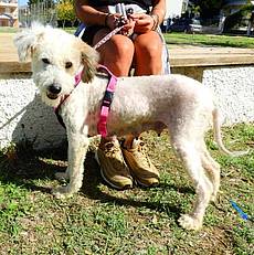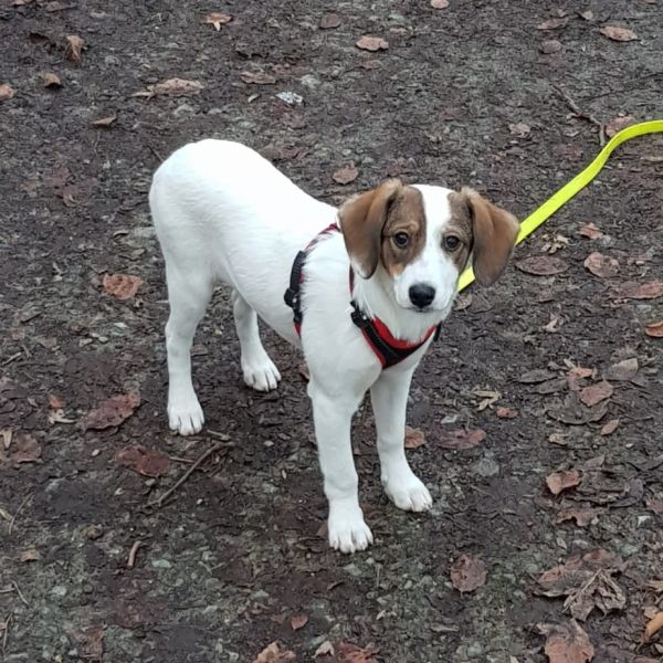Lani ist eines von insgesamt 5 Babies von unserer Lynn. Die kleine Hundefamilie wurde von örtlichen Tierschützern unter der Treppe der Bücherei in Patras gefunden. Sowohl die Mama, als auch die Geschwister haben alle bereits ihre Familien gefunden, nur Lani wartet in ihrer Pflegestelle in 42579 Heiligenhaus noch auf ihre Menschen. Lani ist ein aufgeweckter, neugieriger, verspielter und verschmuster Junghund. Die süße kleine Maus hat leider ein Handicap und zwar kann sie ihre Umwelt nicht hören. Dies beeinträchtigt sie aber insofern nicht, dass sie keinesfalls ängstlich ist und allem Neuen gegenüber sehr aufgeschlossen ist. Aufgrund ihrer angeborenen Taubheit läuft Lani draußen an einer langen Schleppleine, da sie richtig toben und rennen möchte. Auch an der normalen Leine läuft Lani schon sehr gut. Ihre Pflegefamilie trainiert intensiv, dass Lani auf Handzeichen reagiert. Sie sucht draußen häufig den Blickkontakt und kommt dann freudig angerannt, wenn sie „abgerufen“ wird. Lani ist eine süße, tolle kleine Maus, die ihrer Familie trotz ihrer Einschränkung bestimmt viel Freude bereiten wird.