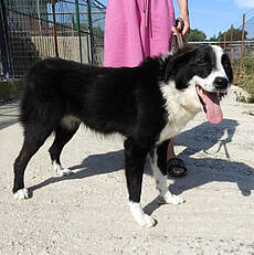 Tsopi wurde aus schlechter Haltung gerettet.Er wurde beschlagnahmt und in das städtische Shelter gebracht. Dort lebt er jetzt seit einigen Monaten und teilt sich den Zwinger mit einer Hündin.