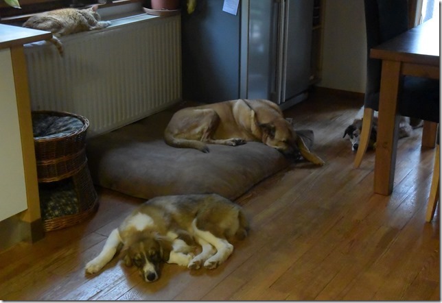 Ein Update zu Paddy, der nun wirklich Schröder heißt. Er ist im Auto gefahren wie ein Weltmeister, ihm wurde weder schlecht, noch war er unruhig, noch hat er in die Hose gemacht. Teilweise ist er sogar eingeschlafen. Zu Hause angekommen, erkundete er zuerst den Garten – er war sehr entspannt. Dann lernte er Maddy kennen, die gute Hundeoma aus Neapel. Das war in 2 Sekunden erledigt, weil sie sich direkt mochten. Danach kam Nils, der introvertierte Shar-Pei Mix aus Griechenland. Nach ausgiebigem Schnuppern drehten sie gleich eine Runde Fangen & Verstecken – er fand den ersten Teich, einen von dreien bei uns Teich = super ! Danach kam Dinah, unsere Leishmansiose Hündin, Bordeauxdogge/Ridgeback aus Griechenland. Auch sie verstanden sich auf Anhieb. Also mit den Kumpels gibt es keinerlei Probleme. Katze Finchen wollte er zum Spielen animieren, aber sie ist ja blind. Als er merkte das seine Aufforderung nicht zum Ziel führt, hat er es gleich aufgegeben. Hühner sind ihm noch suspekt. Das ist aber unerheblich, weil sie eh abgetrennt sind. Die Nacht hat er wunderbar verbracht. Wir haben alle geschlafen bis 7:45 – also definitiv verpennt Stubenrein ist er noch nicht, wir arbeiten dran, wird sich aber bald erledigen. Hunger hat er... unglaublichen Hunger. Er ist kein Hund für schwache Nerven, denn er erkundet alles, räumt alles um und holt sich auch gerne Dinge von Tischen oder Schränken. Alleine das hat die arme Frau sicher an den Rand der Verzweiflung gebracht. Hier hilft nur Konsequenz und zwar in stoischer Form. Und jetzt gehen wir mal ‘ne Runde Powern – und vielleicht den großen Teich erkunden. Später Bilder.