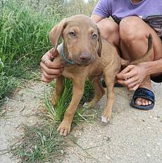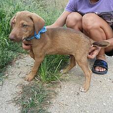Glücklicherweise wurde die Mutter einer jungen Tierschützerin auf das Winseln der Babies aufmerksam und rief sofort ihre Tochter an. Die junge Tierschützerin nahm die Kleinen mit in das Haus ihrer Mutter, damit sie nicht auf der Straße überfahren wurden. Nun leben die Welpen zusammen mit anderen Hundekindern bei der jungen Tierschützerin auf einem eingezäunten Grundstück, wo sie bis zu Ihrer Ausreise Anfang September bleiben. Wir kennen weder die Mutter noch den Vater, gehen aber davon aus, dass die Bande ausgewachsen keine Riesen werden. Eine sichere Angabe zur ausgewachsenen Größe ist selbstverständlich nicht möglich.