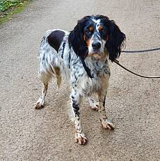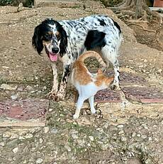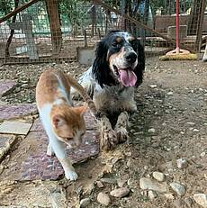 Maily ist ein reinrassiges Settermädchen, das in einem Dorf in der Nähe von Patras ausgesetzt wurde. Die Hündin sah in einem Hof Hunde und ging von dieser Stelle nicht mehr weg, da sie selbst auf der Suche nach Futter war. Eine junge Tierschützerin fand die Setterhündin eher zufällig und nahm sie mit zu sich nach Hause. Der Körper des Hundemädchens war mit Zecken übersät. Nachdem die Zecken entfernt wurden, wurde Maily kastriert und wartet nun bei ihrer Pflegemama auf liebevolle Menschen, die ihr ein schönes Hundeleben ermöglichen möchten. Maily ist eher schüchtern und Maria vermutet, dass die hübsche Maus geschlagen wurde. Aber mit Liebe, Zeit und Geduld wird sie für ihre neue Familie eine tolle Begleiterin durchs Leben. Mit Kindern kommt Maily offensichtlich nicht so gut klar, weshalb sie besser ein Zuhause bei kinderlosen Menschen finden sollte.