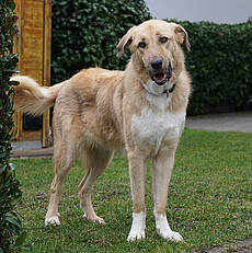 Maximo lebt jetzt seit drei Wochen in Deutschland. Er ist ein wunderschöner Rüde mit einem sanften Charakter, der - obwohl er noch vorsichtig ist - immer gerne unsere Nähe sucht.