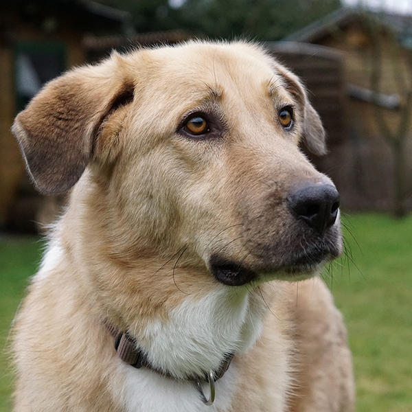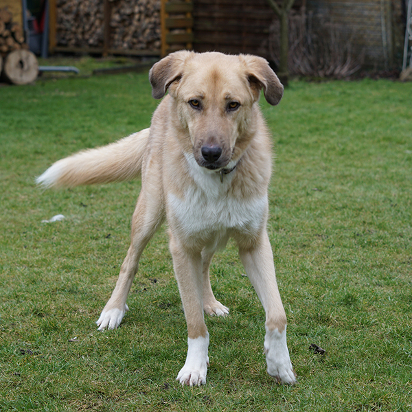 Er ist auf einem guten Weg zu einem unbeschwerten Hundeleben. Jeder kleine Fortschritt – ein vertrauensvolles Blickwechsel, ein wackelnder Schwanz bei Berührungen durch uns, eine nasse Zunge auf der Hand – ist ein Sieg.