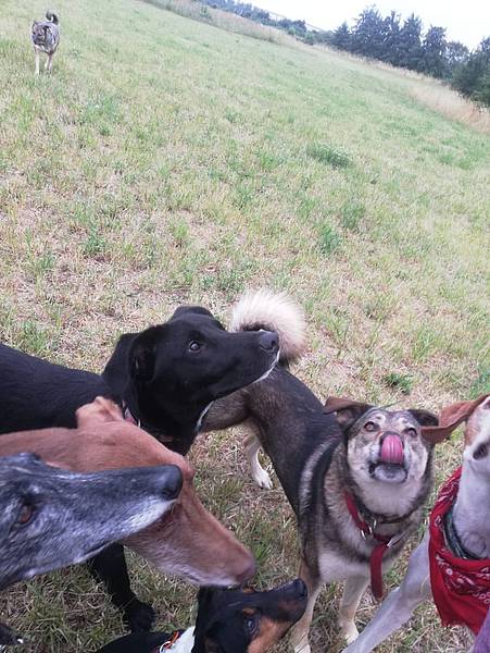 Rimo reagiert auf Umweltreize sicher und angstfrei. Er hat keine Angst vor Knallerei und evtl. ist er auch schußfest. Hürden und Wippen überwindet er sehr geschickt und er lässt sich nicht aus der Ruhe bringen, wenn es nicht gleich klappt und es unangenehm war. Er probiert es einfach wieder. Daher denke ich, das sein Platz im Rettungshund-und Mantrailingbereich ist. Rimo ist ein mutiger, aber auch liebebedürftiger Hund, der noch besser lernen muss, das man seinem Menschen nicht gleich um den Hals fällt. Daher ist er für Familien mit kleinen Kindern eher nicht geeignet, da er noch sehr grob ist. Er ist zwar bei Kindern vorsichtiger, aber man bräuchte da viel Zeit und Geduld.