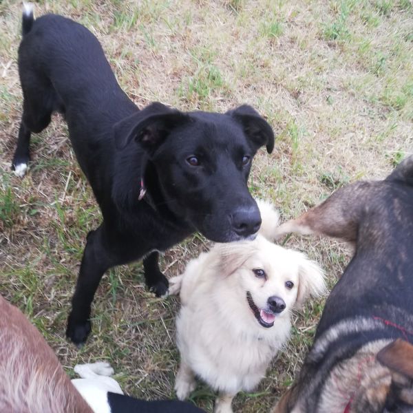 Rimo ist territorial veranlagt und verteidigt sein Revier durch bellen. Er hat gelernt, nicht nur mit dem Rudel, sondern auch ganz alleine zu bleiben.