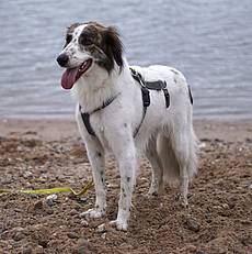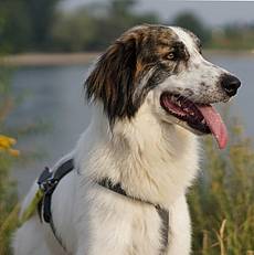 Ada ist jetzt einige Wochen bei uns, sie ist ein ganz liebes, ruhiges und wunderschönes Mädchen. Sie hat in Griechenland nicht viel kennengelernt an Aussenreizen und ist deshalb noch sehr schüchtern. Die Reise nach Deutschland ist schon ein arger Kulturschock für sie. Viele Dinge sind ihr unheimlich, aber sie lässt sich an alles in Ruhe heranführen. Sie zeigt trotz ihrer Zurückhaltung keinerlei Aggression, sondern weicht aus, wenn ihr etwas unheimlich ist. Bei mir im Büro ist sie ein Traum, man merkt sie überhaupt nicht. An der Leine ohne Ablenkung geht sie vorbildlich, nur bei plötzlichen Veränderungen/Geräuschen muss man ihr Hilfestellung geben. Treppen läuft sie problemlos, stubenrein ist sie von Anfang an. Autofahren macht sie sehr souverän, nur beim Einsteigen braucht sie noch etwas Anleitung. Normaler Straßenverkehr macht ihr nichts aus, fremden Menschen begegnet sie sehr vorsichtig, bisweilen auch sehr ängstlich, da braucht sie noch Abstand. Sie benötigt einige Zeit, um Vertrauen zu fassen, aber dann genießt sie die Streicheleinheiten.