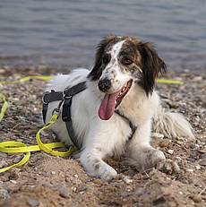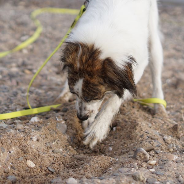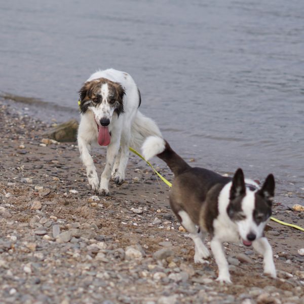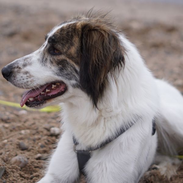 Fremde Menschen müssen sich ihr Vertrauen langsam erarbeiten, Ada ist von Natur aus eher misstrauisch und geht nicht aktiv auf Menschen zu, versucht eher auszuweichen. Aber sie ist auch neugierig und im Schatten ihrer Hundefreunde überwindet sie sich doch schneller. Deshalb wäre ein souveräner, offener Ersthund in ihrem neuen Zuhause eine große Hilfe. Auch neue Situationen oder plötzliche, laute Geräusche bringen sie noch aus der Ruhe, wir merken aber, dass die Routine ihr in kleinen Schritten Sicherheit gibt und dass es täglich besser wird. Es ist noch ein weiter Weg, aus Ada eine völlig entspannte Hundedame zu machen, mit Geduld und Spucke kommen wir jedoch weiter!