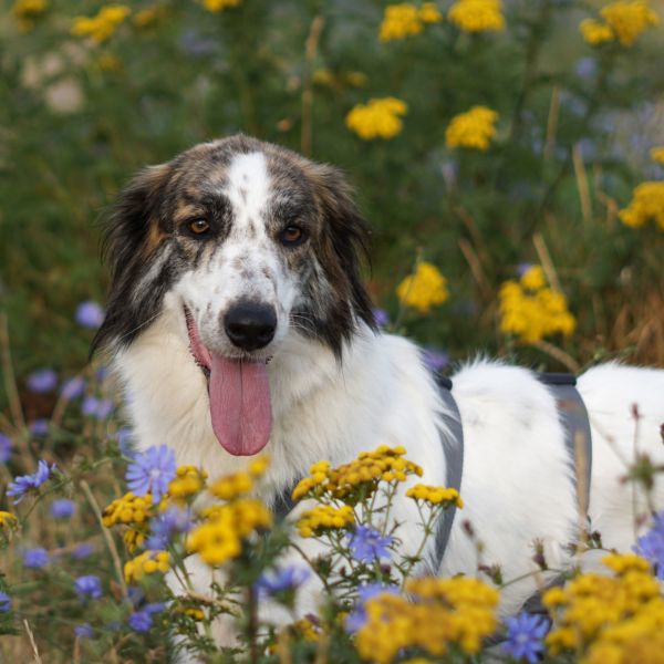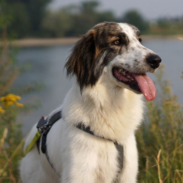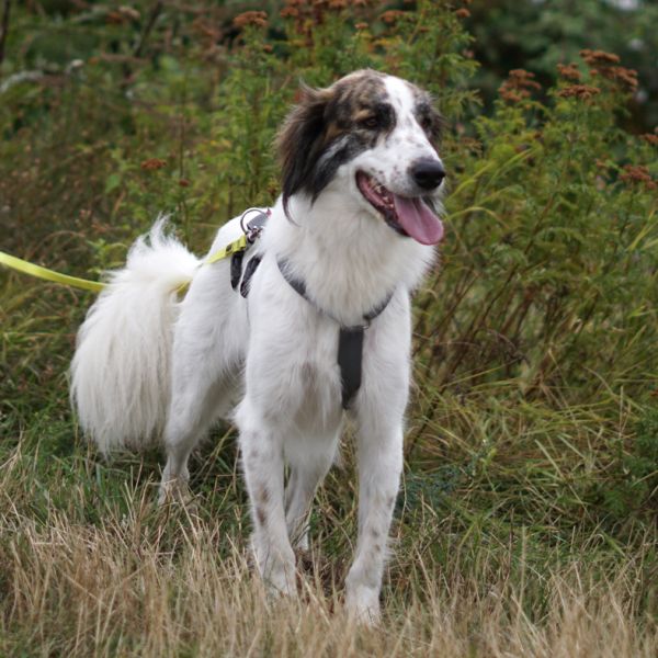 Ada ist eine besondere Hündin, ganz ruhig und zurückhaltend, als ob sie überhaupt nicht auffallen möchte. Sie gehört nicht zu den Kandidaten, die voller Temperament auf einen zugerannt kommen und vor Freude in die Luft springen – bei Ada geht es eher gemächlich zu. In den drei Monaten haben wir gelernt, sie zu „lesen“, zu uns hat sie eine gute Bindung aufgebaut, sucht unsere Nähe und fordert manchmal auch schon von sich aus Streicheleinheiten ein. Das sind große Schritte, die sie gemacht hat, seit dem sie bei uns angekommen ist. Viel Geduld war dafür erforderlich, aber die hat sich gelohnt. Es ist so schön zu sehen, wenn Ada auch mal völlig befreit und mit erhobenem Schwanz freudig über eine Wiese rennt! Bei diesem Anblick geht uns das Herz auf.