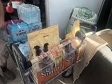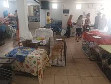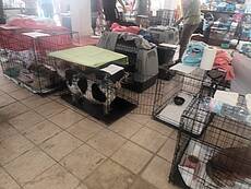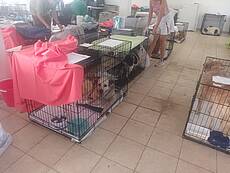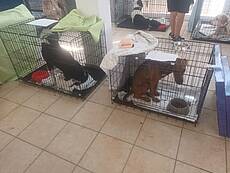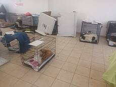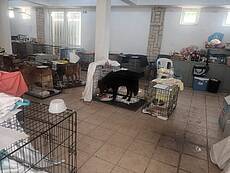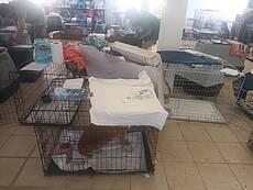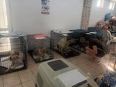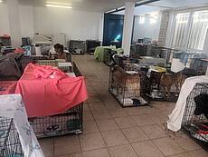 Heute erreichten uns Fotos aus der Notunterkunft, wo die geretteten Tiere versorgt werden und in Boxen ausharren, bis man annähernd weiß, wie es weitergeht.