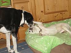 Juliana und Joker wurden mit 2 weiteren Geschwisterchen im Hof eines Waisenhauses in Patras ausgesetzt.Ein junges Tierschützerpaar fand die kleinen Welpen und nahmen sie mit, da sich Zigeunerkinder in der Nähe aufhielten, die gerade Welpen sehr gerne quälen. Zunächst sah es so aus, als wenn alle 4 Welpen gesund sind, aber es stellte sich heraus, dass alle eine schwere Infektion hatten. 2 Geschwisterchen sind leider verstorben, aber die übrigen beiden sind nun kerngesund und toben auf ihrer Pflegestelle mit anderen Hunden umher. Wie alle Welpen benötigen auch diese Beiden viel Aufmerksamkeit und liebevolle, aber konsequente Erziehung. Mit Kindern, Hunden und/oder Katzen werden sie in ihrem neuen Zuhause keine Probleme haben. Wir suchen nun Familien, die den Rackern ab Ende November ein schönes Zuhause schenken möchten. Da die Eltern unbekannt sind, können wir zur ausgewachsenen Größe keine Angaben machen. Selbstverständlich sind sie geimpft, gechipt und entwurmt. Außerdem hat jeder seinen eigenen EU-Heimtierausweis im Gepäck.