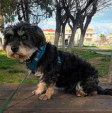 Leon und seine Schwester lebten lange bei einem Besitzer, der ein Zoogeschäft betrieb. Nach langen Gesprächen gab er den Tierschützer damals Bijou, wollte Leon aber behalten. Die Tierschützer versuchten monatelang auch Leon übergeben zu bekommen und gaben letztendlich erfolglos auf. Vor ein paar Wochen tauchten im Facebook Bilder von einem kleinen Hund in einem sehr schlechten Zustand auf. Der kleine Kerl lief in der Nähe des Zoogeschäfts über die Straßen. Eine Dame, die seinerzeit ebenfalls versuchte Leon und seine Schwester zu retten, erkannte den kleinen Hundejungen sofort. Maria und ihre Kollegen konnten Leon finden und waren fasssungslos, in was für einem erbärmlichen Zustand er sich befand. Nach einem Besuch beim Hundefriseur, wo das verfilzte Fell entfernt wurde, ging es für Leon zum Tierarzt. Dort bekam er seine nötigen Impfungen und auch einen Mittelmeertest. Leon ist ein kerngesunder Hundejunge, der nun bei seiner Retterin auf Pflegestelle lebt. Die Katzen seiner Pflegemama interessieren Leon nicht.