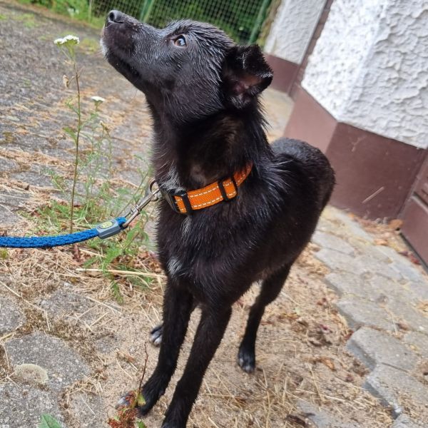 Rico ist ein fröhlicher, verspielter, geselliger junger Hund. Er versteht sich sehr gut sowohl mit unseren Hunden als auch Katzen. Er läuft gut mit Geschirr und Leine.