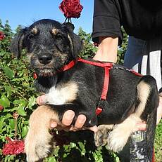 Wenigstens überließ der herzlose Halter die Kleinen nicht irgendwo weit weg ihrem Schicksal, sondern gab ihnen wenigstens die Chance gefunden und in Sicherheit gebracht zu werden. Nun leben die 7 kleinen zierlichen Mäuse in dieser Pension, wo sie auf Familien warten, die ihnen ab Ende November ein schönes Leben ermöglichen möchten. Wie alle Welpen ist auch diese Bande verspielt und jeder Einzelne benötigt im neuen Zuhause viel Aufmerksamkeit und liebevolle sowie konsequente Erziehung. Da die Eltern unbekannt sind, können wir zur ausgewachsenen Größe der Kleinen keine Angaben machen. Mit Kindern, Hunden und/oder Katzen werden sie prima klarkommen und ihren Familien tolle Begleiter sein. Alle Welpen sind geimpft, gechipt und entwurmt. Außerdem hat jeder einen eigenen EU-Heimtierausweis im Gepäck.