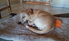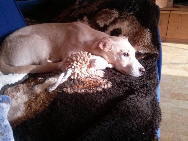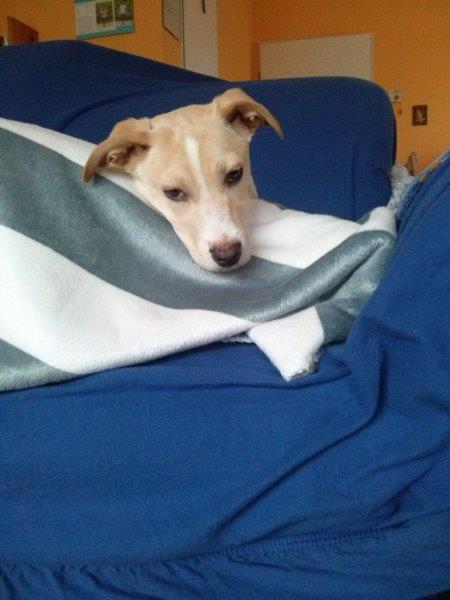 nach dem aufgregenden Tag am 9.1 ist Angelina nun schon fast 2 Wochen bei uns. Sie hat sich hier schnell eingelebt und fühlt sich recht wohl. Sie liebt uns ebenso heiß und innig wie wir sie. Nur unsere Katze muss sich noch etwas gewöhnen. Angelina geht gut an der Leine, ist stubenrein und tobt sehr gerne. (Sie hat eine menge Temperament). Leider hat sie zum Teil Angst vor Männern (ist schon etwas besser) , aber extrem Angst vor anderen Hunden. Diese verbellt sie und schnappt nach ihnen. Jetzt haben wir eine Hundetrainerin zu Rate gezogen die uns mit Rat und Tat unterstützt. Laut dieser ist es keine Verhaltensstörung, sondern ein nicht erlernt sein oder schlechte Erfahrungen. Also kein Grund für uns entmutigt zu sein. Und Angelina lernt fleßig und gut und macht uns große Freude.