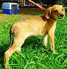 Die beiden waren abgemagert, von Flohbissen übersät und hatten außerdem Probleme mit der Haut. Sie wurden in einem Ort in der Nähe von Patras zur Tierärztin gebracht und erfolgreich behandelt. Maria hat sie zusammen mit Kollegen dort abgeholt und in Patras auf einer Pflegestelle untergebracht. Die beiden Mäuse sind zwar noch nicht alt genug, um ausreisen zu können. Wir suchen aber heute schon Familien, die den beiden Hundekindern ab Oktober ein schönes Zuhause schenken möchten. Wie alle Welpen benötigen auch diese  2 viel Aufmerksamkeit und konsequente Erziehung, um zu tollen Familienhunden heranwachsen zu können. Mit Kindern, Hunden und/oder Katzen werden sie in ihrem neuen Zuhause keinerlei Probleme haben. Da wir die Eltern der beiden Mäuse nicht kennen, können wir zur ausgewachsenen Größe keine Angaben machen.