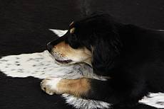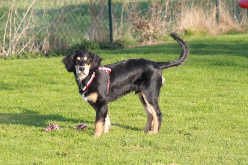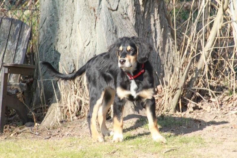 Am liebsten spielt er mit seinem Kumpel Tommy und geht mit uns auf Erkundungstour. Wenn ihm etwas unheimlich ist, kommt er sofort zu uns zurück gerannt. Wir haben sehr viel Freunde mit ihm und ich glaube er fühlt sich auch sehr wohl. Er wächst und nimmt stetig an Gewicht zu und kennt auch schon die ersten Grundkommandos. Inzwischen bleibt er problemlos mit Tommy für kurze Zeit alleine zuhause.