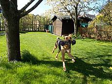 Endlich kann ich nun die versprochenen Fotos von Fedra liefern. Sie ist eine ausgesprochen liebe Hündin und hat sich sehr gut eingelebt. In der Hundeschule macht sie gut mit und lernt schnell und willig. Der Trainer bezeichnet sie als "Traumhund", wenn er der Gruppe mit ihr ein Kommando vorführt. Sie zeigt sich als intelligent und aufmerksam und beherrscht schon etliche Kommandos. Zu allen Menschen und Hunden ist sie aufgeschlossen, freundlich und sehr lieb. Wir sind mit ihr sehr glücklich und sie mit uns auch. Wir freuen uns jeden Tag, dass Fedra zu uns gekommen ist.