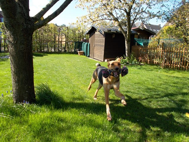 Unserer Fedra geht es blendend. Sie ist ein Schatz und eine echte Süße. Beim Longieren (Kommandos ohne Worte) ist sie Klassenbeste und läuft so elegant, dass die Trainer in unserer Hundeschule immer ganz begeistert sind. Ein echtes Talent! In der normalen Hundeschulstunde macht sie gern mit und hat Spaß mit den anderen Hunden, wobei sie immer recht stürmisch ist und dann auch ab und zu von den anderen (großen) Hunden in die Schranken gewiesen wird.