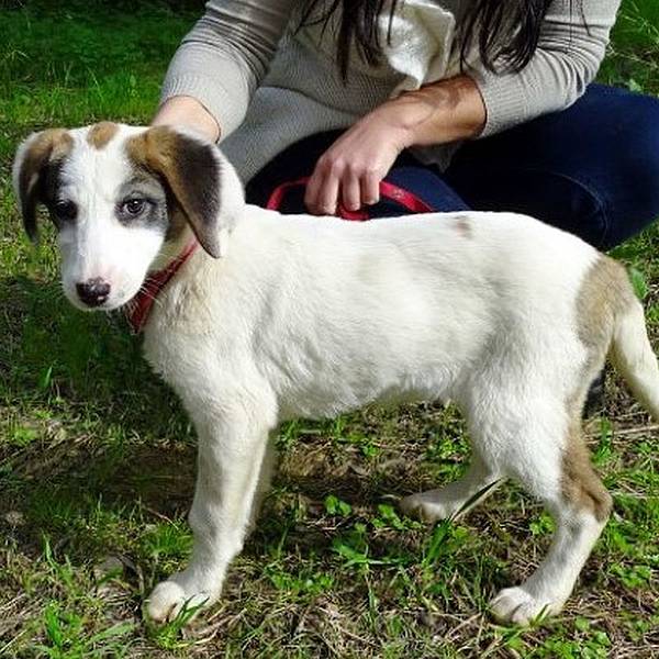 Felda ist ein kleines Welpenkind, das von Zigeunerkindern im Hafen von Patras mit einem Strick um den Hals umher gezogen wurde.