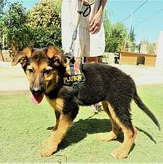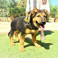 Feliz lebt nun in einer örtlichen Pflegestelle mit mehreren jungen und erwachsenen Hunden zusammen, sie zeigt sich dort sehr sozial und tobt welpentypisch mit ihren Artgenossen. Dem Aussehen nach ist sie ein Schäferhund Mix, wiegt momentan 8kg und ist 35cm groß. Zu ihrer ausgewachsenen Größe können wir aber keine verlässlichen Angaben machen, da uns die Eltern nicht bekannt sind.