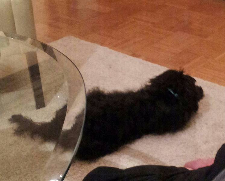 Jetzt liege ich unter dem Schreibtisch, lasse Frauchen für mich tippen und schlafe erst mal.