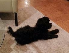 Das ist der 1jährige Pudel meiner Freundin. Deren älteren Welsch-Terrier behandelt er mit Respekt und die rumtoberei mit einer befreundeten Jack-Russel Hündin, hält sich in Grenzen, das scheint ihm zu doof zu sein.