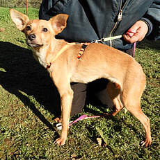 Fiffi ist eine zarte Hündin, gerade mal 27cm groß und 3,5kg schwer. Sie kennt das Leben in einem Rudel und auch in einem Haus, darüber hinaus hat sie aber noch nicht viel kennen gelernt. Deshalb sucht sie Menschen, die erstmal nichts von ihr erwarten und ihr zeigen, wie ein normales Hundeleben funktioniert. Fiffi scheint etwas schüchterner zu sein, aber wie man den Videos entnehmen kann, lässt sie sich mit Leckerlies schnell überzeugen ;) Sie braucht ein ruhiges Zuhause, welches ihr die Sicherheit gibt, aus sich herauszukommen.