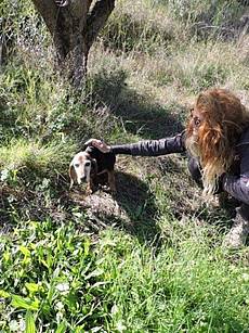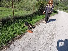 Offensichtlich war die Maus von ihrem Besitzer kurz vorher dort ausgesetzt worden, denn sie zitterte am ganzen Körper und wußte überhaupt nicht, was mit ihr geschah. Die Tierschützer legten Fiona zunächst Futter hin und mussten sie schweren Herzens zurücklassen, da sie auf dem Weg waren, um eine andere kranke Hündin einzufangen. Auf dem Rückweg sahen sie Fiona traurig unter einem Baum sitzen. Das Futter hatte die abgemagerte Maus bereits gefressen. Eine Kollegin von Maria beugte sich zu Fiona hinunter, um sie zu streicheln. Sofort begann Fiona der Frau die Hände zu lecken, so dankbar war sie für die wenigen Streicheleinheiten. Maria und ihre Kollegen brachten es nicht fertig, Fiona ihrem Schicksal zu überlassen. Sie nahmen die Hündin mit, brachten sie zunächst zur Tierärztin, die Fiona untersuchte und direkt auch einen Bluttest machte, der jedoch in allen Bereichen negativ ausfiel. Bei der Untersuchung wurde ein älterer Bruch an einem Bein festgestellt, der Fiona aber beim Laufen absolut nicht stört. Nun lebt das hübsche Langohr bei einer Tierschützerin, wo sie ein Häuschen mit einer warmen Decke hat und sich sichtlich wohlfühlt.