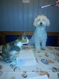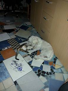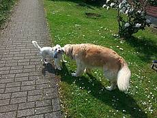 Ich bin ja jetzt schon einige Monate bei meinen Menschen und was soll ich sagen, sie sind sehr nett. Leider muss ich auch sagen das ich viel zu tun habe um meine Menschen zu Erziehen. Es hat etwas gedauert bis ich sie soweit hatte, aber jetzt brauche ich ihnen nur den Ball hinlegen und sie werfen ihn dann fort und wenn ich an die Tür gehe kommen sie angelaufen und wir gehen raus Ständig muss ich hinter ihnen her räumen. Meine kleine Menschenfreunde, Tim, Chiara und Marc lassen immer ihre Pfotenbekleidungen liegen (die Menschen sagen Schuhe, naja sie wissen es halt nicht anders)