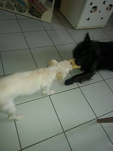 Irgendwie sind die ja niedlich, ich kann die kleinen Katzenfreunde die Treppe rauf und runter jagen.