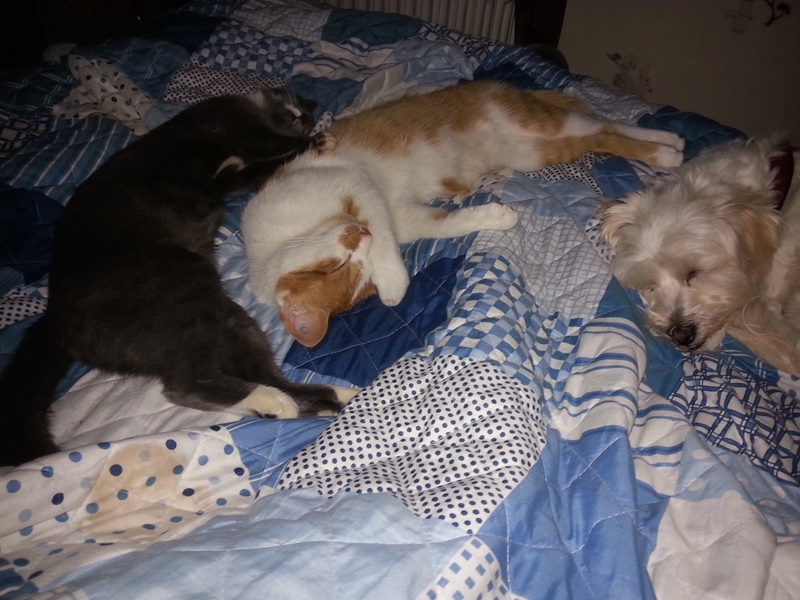 Selbst im Bett bei meiner Menschenfrau liegen die.