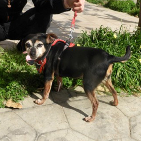 Die kleine Frieda wurde einfach ausgesetzt.Man fand die Hündin in keinem guten gesundheitlichen Zustand angebunden an einem Baum. Frieda wurde in eine Klinik der Gemeinde Patras gebracht. Dort wurde sie kastriert und auch ein paar kleine Tumore mussten entfernt werden. Frieda hat sich nach der OP gut erholt, und ist danach ins städtische Tierheim gekommen. Für die ältere Hündin war es kein schöner Ort, weshalb unsere Maria Frieda zu sich nach Hause nahm. Hier zeigt sich die Hündin absolut vorbildlich! Sie ist stubenrein, verträgt sich mit Artgenossen und auch mit Katzen hat sie keine Probleme. Für ihre geschätzten 9 bis 10 Jahre ist Frieda sehr rüstig und aktiv. Jetzt sucht sie Menschen, die ihr „auf ihre alten Tage“ noch ein schönes Körbchen auf Lebenszeit schenken.