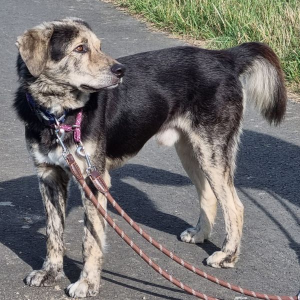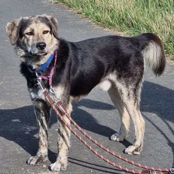 Jerry wurde im Welpenalter zusammen mit seiner Schwester von einer Tierschützerin gefunden, die die Beiden dann aufzog. Jerry lebte bis zu seiner Ausreise Ende Juni 2025 auf einem eingezäunten Grundstück mit vielen Hunden, Katzen und Hühnern problemlos zusammen. Auch durfte er öfter mit in die Wohnung der Tierschützerin gehen. Ebenso ist er gerne Auto gefahren.