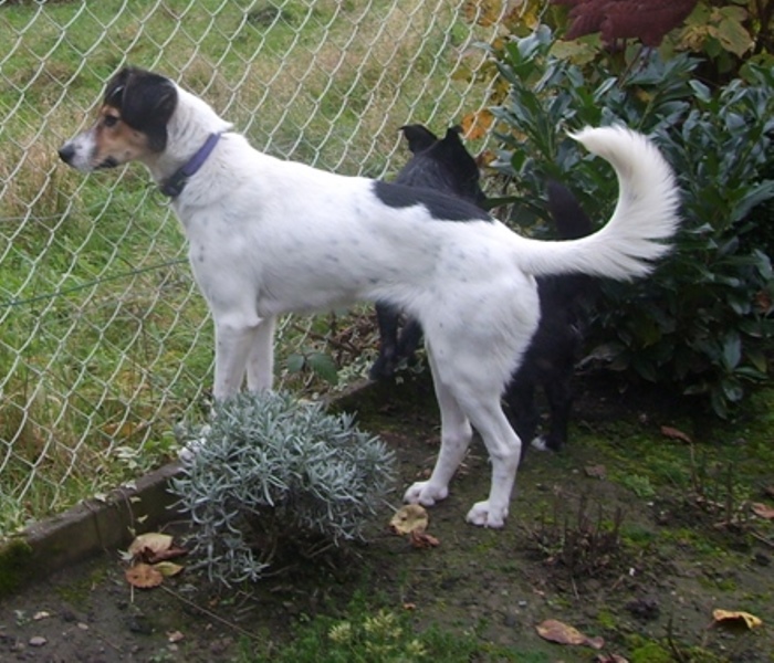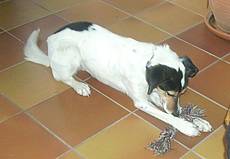 Kati hat sich gut eingelebt. Sie ist eine wirklich sehr nette, hübsche Hündin. Verschmust, verspielt und draußen temperamentvoll. Mit anderen Hunden versteht sie sich sehr gut. Sie hat eigentlich immer gute Laune und wenns ans Futtern geht, steht sie immer als Erste neben mir. Ungewohnte Geräusche, wie Traktoren u. ä. ., machen ihr kaum was aus, da schaut sie nur etwas irritiert.