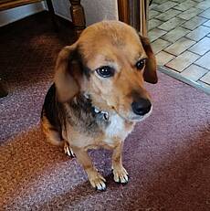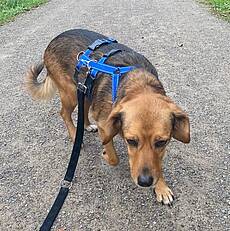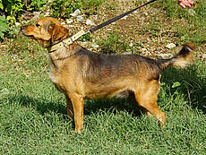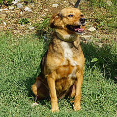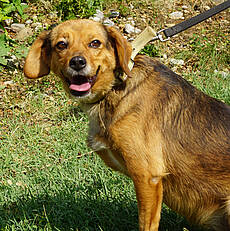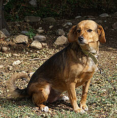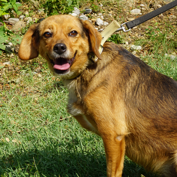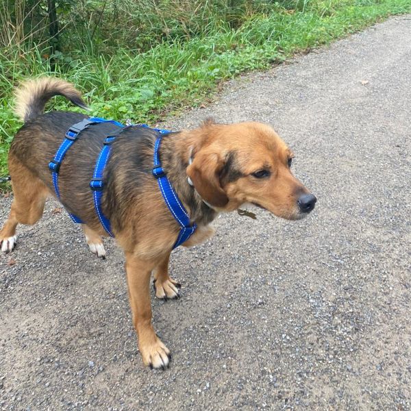 Kanella ist eine knapp 6 Jahre junge Hündin, in der eventuell ein Beagle stecken könnte. Sie wurde im Alter von wenigen Tagen zusammen mit ihren 6 Geschwistern ausgesetzt. Durch eine ältere Dame wurden die Hundebabies per Flasche aufgezogen und 4 von ihnen konnten dann in Griechenland ein neues Zuhause finden. Kanella kam im Oktober 2023 nach Deutschland auf eine Pflegestelle und fand im November ihr endgültiges Zuhause. Leider musste die süße Maus ihr Zuhause nun wieder verlassen, da ihr Frauchen aufgrund eines schweren Sturzes sich nicht mehr um sie kümmern kann. Nun sucht die Kanella, die auf den Namen Ella hört, ein neues Zuhause. Kanella ist eine ruhige, zurückhaltende Hündin, die eine gewisse Zeit braucht, um zu Menschen Vertrauen zu fassen. Sobald sie dies gefunden hat, liebt sie es zu kuscheln und gestreichelt zu werden. Sie geht gerne Gassi, aber in einem eher gemächlichen Tempo, wobei das Lesen der Hundezeitung durchaus wichtig ist und auch intensiv vorgenommen wird. Kanella ist stubenrein, kann gut im Auto mitfahren und ist alles in allem eine genügsame und sehr ruhige Begleiterin. Für Kanella wünschen wir uns ein Zuhause bei ruhigen Menschen, die vielleicht über ein Haus mit Garten verfügen und viel Zeit und Geduld für diese Hündin haben. Treppensteigen ist nicht so ihr Ding, das kennt sie nicht und will sie deshalb auch nicht. Davor fürchtet sie sich. Zwingend erforderlich ist, dass Kanella’s neue Familie über Hundeerfahrung verfügt, fremde Hunde „lesen“ kann, um Kanella draußen beschützen zu können. Ihren Artgenossen begegnet sie draußen mit Desinteresse und geht ruhig und gemütlich an denen vorbei. Sobald ein Hund etwas aufdringlicher ist, dreht Kanella sich weg und will nichts davon wissen.