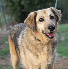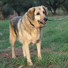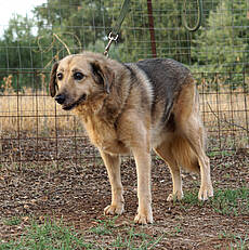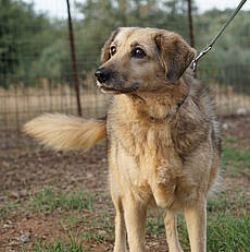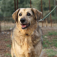 Lenia wurde nachts gegenüber Marias Haus angebundenDie Hündin war völlig vom Regen durchnässt. Maria brachte Lenia in Sicherheit und versuchte über die sozialen Medien ihre Besitzer zu finden. Heraus kam, dass die Hündin in einer Provinz weit abseits von Patras auf der Straße lebte und von Anwohnern gefüttert wurde. Offensichtlich hat sie nie ein Zuhause gehabt. Wie die Hündin nach Patras kam, wird ein Rätsel bleiben. Anscheinend hat sie jemand gezielt zu Maria‘s Haus gebracht. Jetzt lebt sie in einer Pension mit weiteren Artgenossen zusammen.