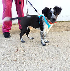 Die Finderin nahm beide Welpen mit und bat Maria, ein Zuhause für sie zu suchen. Die Schwestern wurden zur Tierärztin gebracht, geimpft, gechipt und auf den Namen der Frau registriert. Sie sollten solange bei ihr bleiben, bis der Impfschutz komplett ist.Falls bis dahin noch kein neues Zuhause für die beiden gefunden worden wäre, kämen sie in das städtische Shelter. Aber schon ein paar Tage später sind die Kleinen auf einem Campingplatz abseits von Patras aufgetaucht. Anscheinend ging es der Finderin nicht schnell genug mit der Suche nach einem Zuhause. Durch die Auslesung des Chips konnten sie zugeordnet werden und Maria wurde informiert. Jetzt sind sie erstmal in einer Pension untergebracht und wir hoffen, dass ihnen das Shelter erspart bleibt. Ihre Impfungen sind ab Mitte Dezember komplett sodass sie dann ausreisen können.