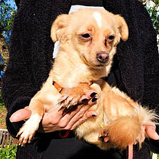 Lulu ist wahrscheinlich ein Chihuahua Mix, sie ist gerade mal 20cm groß und 3,5kg schwer. Sie kennt das Leben in einem Rudel und auch in einem Haus, darüber hinaus hat sie aber noch nicht viel kennen gelernt. Sie ist noch etwas vorsichtig, aber durchaus dem Menschen zugetan. Deshalb sucht sie eine Familie, die erstmal nichts von ihr erwartet und sie mit Ruhe und Geduld an alles Neue gewöhnt.