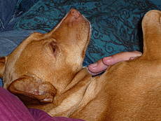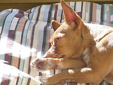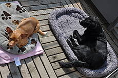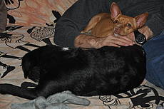 Liebe Frau Kibellis, Pina, vormals Margie, und das gesamte Rudel wünschen Ihnen und allen Tierfreunden Patras ein gesundes, frohes und möglichst erfolgreiches Jahr. Nicht mehr lange und Pina ist ein Jahr bei uns. Es geht ihr sehr gut, sie ist wirklich eine ausgeprägte, clevere, aber sehr nette Persönlichkeit und wir kommen alle gut miteinander zurecht. Mit Kumpel Nemo geht es auch bestens, er würde gerne mehr mit ihr toben und spielen, aber das macht Pina lieber mit Menschen. Die große Liebe ist es nicht zwischen den beiden, aber wohlwollender Respekt und gemeinsam ist man natürlich stärker. (Wenn es mal donnert oder ein großer unbekannter Hund daher kommt.) Am Arbeitsplatz von Frauchen sind alle begeistert und das ein oder andere Lecherli gibt's dort auch. Also alle sind froh und dankbar für die Vermittlung.