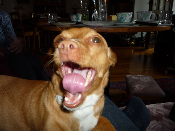 Größere Hunde muß Margie langsam kennen lernen. Wenn Margie sie einige Male gesehen hat, spielt sie wahrscheinlich auch mit ihnen. Gerne bekommt sie aber, nachdem sie gefressen hat, ihre dollen 5 Minuten. Dann rennt sie knurrend und bellend durch die Wohnung :-)  Ansonsten ist sie keine Kläfferin, kann aber gut grunzen wenn sie etwas möchte, z.B. wenn ich Futter zubereite.