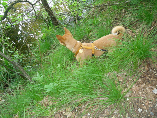 Sie reagiert bei anderen Hunden vorsichtig. Als sie erstmalig auf Lorito traf versteifte sie sich, bis er sich wieder zurück zog. Bei Hunden ihrer Größe (Mops, Jack Russell, Dackel usw.) geht sie durchaus schnuppern. Auch ein Cocker ging noch. Noch größere Hunde veranlassen sie aber doch lieber Platz zu machen bzw. eine andere Richtung einzuschlagen. Insbesondere wenn die auf sie zugerannt kommen. Lorito hat sie heute zum Spielen aufgefordert, sie fand das noch etwas gruselig und hat sich lieber hinter meinen Beinen versteckt.