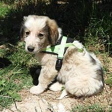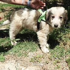 Die Hündin und die Welpen wurden von einer Familie entdeckt, die in dieser Gegend wanderte. Die Tierschützer in Patras wurden informiert, aber leider war keine Pflegestelle sofort frei, um alle 8 Welpen und die Mama in Sicherheit bringen zu können. Die Familie versprach den Tierschützern, sich um die Hundefamilie in puncto Futter und Wasser zu kümmern, bis eine Pflegestelle gefunden war. Als Maria und ihre Kollegen endlich eine Unterbringungsmöglichkeit hatten und die Hundefamilie abholen wollten, waren 5 Welpen verschwunden. Die Suche verlief leider erfolglos und so konnten nur die 3 verbliebenen Welpen in Sicherheit gebracht werden. Nun leben sie bis zu ihrer Ausreise Mitte Juni bei einer jungen Tierschützerin.