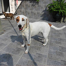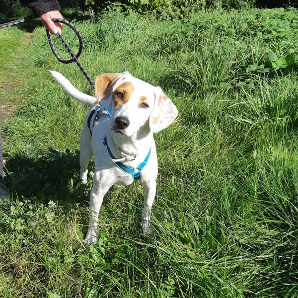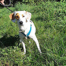 Schaut mal wie süß ich bin. Mein Pflegevater sagt, ich bin draußen eine ganz aufgeweckte Hündin und laufe ganz ruhig und entspannt an der Leine. In der Wohnung merkt man garnicht, dass ich da bin. Nach dem Spaß draußen, gibt es Futter und ich lege mich ins Körbchen und schlafe tief und fest. Stubenrein bin ich auch und alleine bleiben klappt auch ohne Probleme. Er sagt, besser kann es nicht sein. Ich wünsche mir ein ganz tolles Zuhause, als Zweithund wäre auch prima - ich verstehe mich nämlich mit allen Artgenossen.