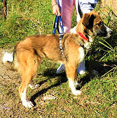 Nina ist eine liebe, freundliche Hündin, die Menschen gegenüber offen und verträglich mit Artgenossen ist. Sie kennt auch das Laufen an der Leine.