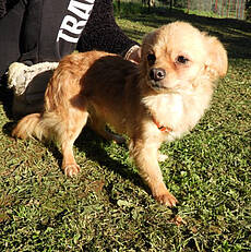 Nina ist wahrscheinlich ein Chihuahua Mix, sie ist gerade mal 20cm groß und 2,7kg schwer. Sie kennt das Leben in einem Rudel und auch in einem Haus, darüber hinaus hat sie aber noch nicht viel von der Welt kennen gelernt. Deshalb sucht sie Menschen, die sie in Ruhe ankommen lassen und ihr zeigen, wie ein normales Hundeleben funktioniert. Wie man den Videos entnehmen kann, ist Nina ein fröhliches Mädchen, das Streicheleinheiten sehr genießt.