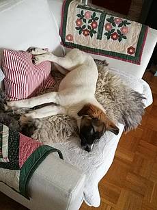 jetzt wollte ich mich mal melden. Paxi heißt jetzt Lola und hat sich super bei uns eingelebt. Sie ist ein super Hund. Sie schläft toll in der Nacht, langsam bekommen wir auch in den Alltag schon so eine Art Routine. Ihr Geschäft erledigt sie seit gestern ausschließlich draußen. SUPER. Sitz und Bleib versteht sie schon, und sie freut sich riesig, wenn wir ohne Leine Gassi gehen. Morgens treffen wir uns immer auf eine halbe Stunde mit meinen alten Hunde-Gassi-Freunden zum Spielen und auch sonst freuen wir uns einfach, dass sie bei uns ist. Und ich glaube, sie freut sich auch. Sie hat mehrere Plätze, an denen sie schlafen kann. Sie sucht es sich aus, je nachdem wer gerade in der Nähe ist. Aber ich würde lügen, wenn ich sagen würde, dass sie nicht auch noch manchmal recht anstrengend ist. Sie hat 3x am Tag ihre anstrengenden verrückten 10 Minuten, und am liebsten verbeißt sie sich dann in die T-shirts, Hosen oder Blusen, die man gerade trägt. Nun haben wir schon Zerrseile bestellt, damit wir richtig toben können, ohne die Kleidung direkt danach in den Müll werfen zu müssen.
