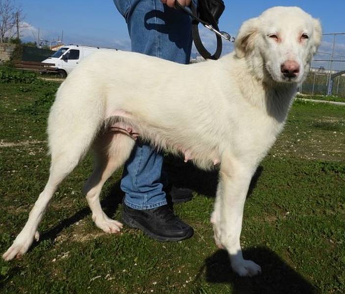 Unsere Pia wurde von örtlichen Tierschützern zusammen mit ihren 5 Welpen an einer Autobahn in der Nähe von Araxos im Müll gefunden.