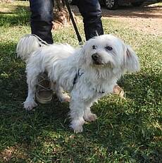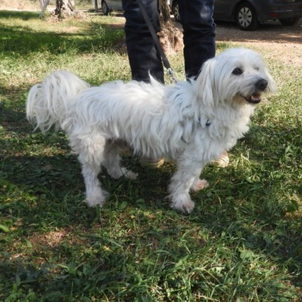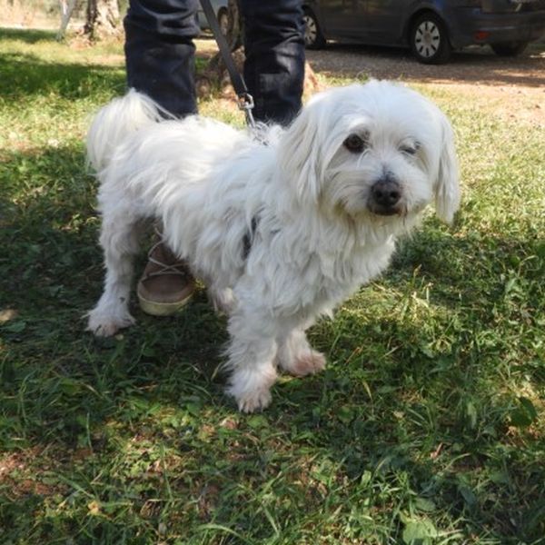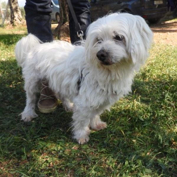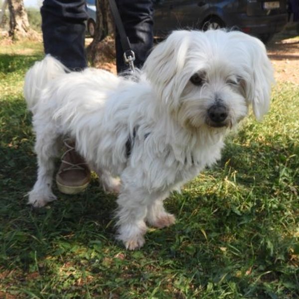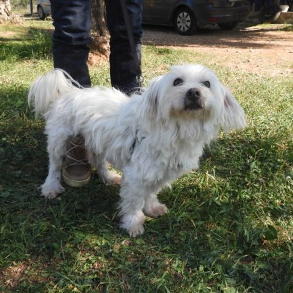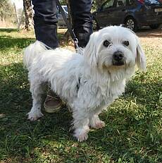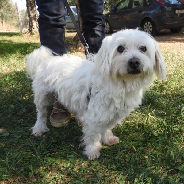 Sonny ist ein Maltesermischling, der auf den Straßen am Strand von Patras lebte.