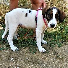 Die Kleine hatte die Äuglein noch geschlossen und wäre wenige Stunden später qualvoll und einsam gestorben. Die Tierschützerin brachte die Maus schnell nach Patras zu einer Dame, die Suzie mit der Flasche aufpäppelte. Alle bangten um das Leben der Kleinen, aber dank der aufopferungsvollen Fürsorge der Frau hat Suzie überlebt und eines Tages ihre Augen geöffnet. Wenig später konnte sie alleine fressen. Im Alter von 2 Monaten kam sie dann zu der jungen Tierschützerin, die sie gefunden hatte. Dort lebt die Kleine nun bis zu ihrer Ausreise Mitte September mit anderen Hunden, Katzen und auch Hühnern zusammen. Zur Endgröße von Suzie können wir keine Angaben machen, da wir die Eltern nicht kennen. Suzie wird in ihrem neuen Zuhause mit Kindern, Hunden und/oder Katzen keinerlei Probleme haben. Sie ist geimpft, gechipt und entwurmt. Außerdem bringt sie bei ihrer Einreise ihren eigenen EU-Heimtierausweis mit.